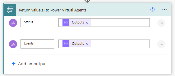 My parcel topic will be triggered using the keywords and in response, will welcome the user and ask them for a tracking reference. It then saves the supplied reference into a variable which is then supplied to Power Automate as an Input Variable, in this case I called it trackingref. The flow is created as an action and requires the PVA trigger, with corresponding input variable, the actions in between, and the output. In my case I have two variables as Markdown Tables, the current parcel status and the event history of the Parcel.