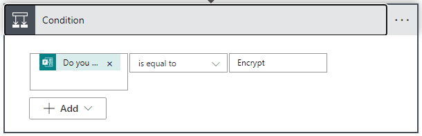 Condition: the purpose of this is to branch yes or no based on the the string Encrypt or not, i.e. Decrypt, so that the appropriate logic is applied to the indexes that have been calculated above. For a Encrypt they are added for a decrypt the process is reversed.