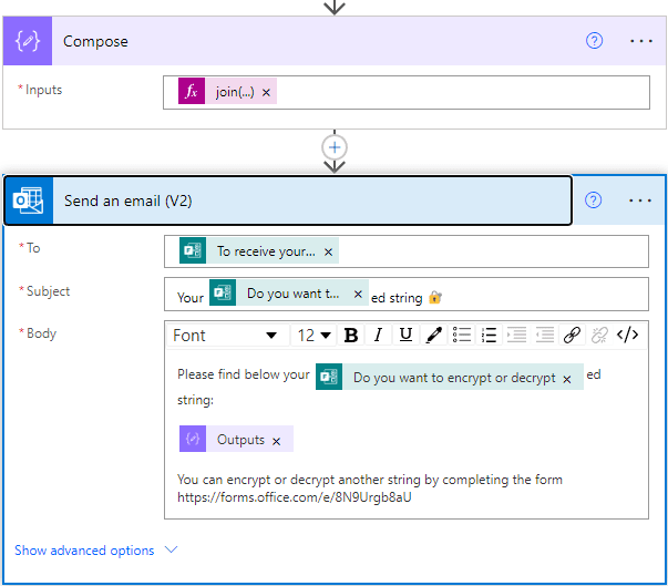 ComposeString: is the string to be encrypted or decrypted from the Microsoft Form.