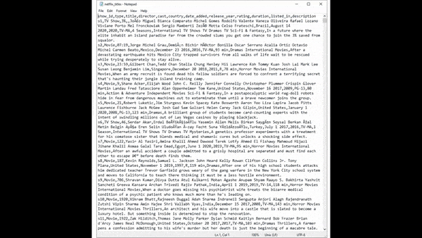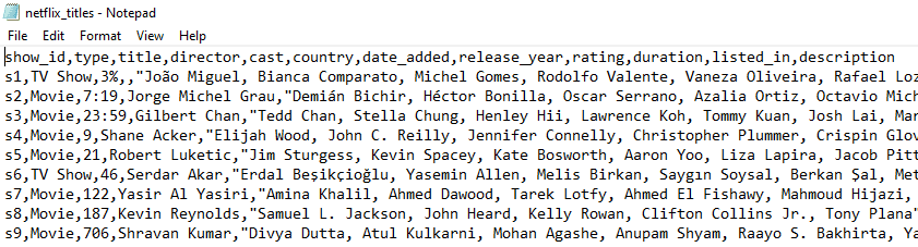 Sample CSV Data for Netflix