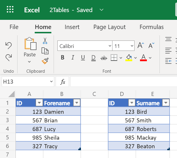 SharePoint List which shares the same Primary Key as the Excel Tables